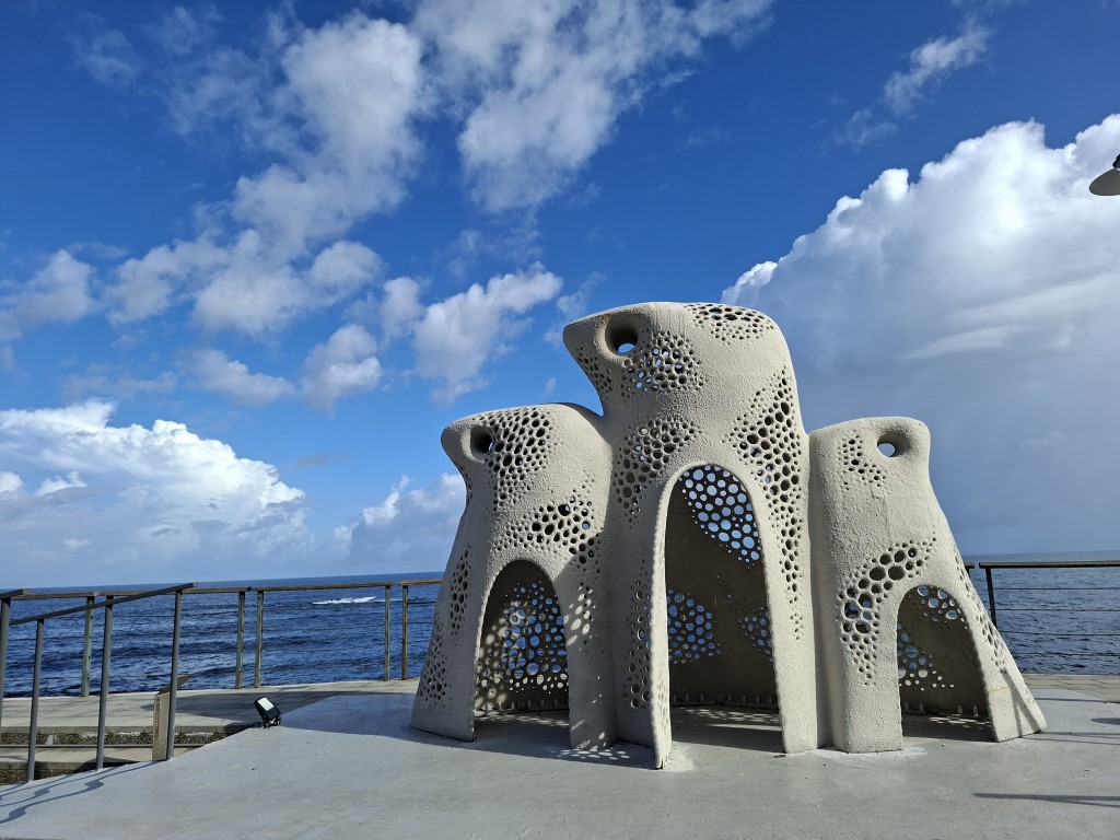 九號咖啡石城館,座落於石城漁村的山海交界,建築緊貼岩岸懸崖,俯瞰湛藍海景與龜山島遠景。咖啡館以簡約木質與落地玻璃設計,將自然光線引入室內,營造與海岸景觀融合的氛圍。在此享受手沖咖啡的香氣,感受海風拂面,同時觀察潮間帶生態,兼具休憩與生態學習功能,是結合咖啡文化、景觀美學與漁村生活的獨特體驗。