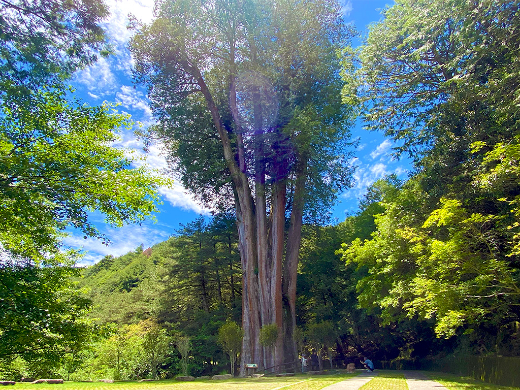 1400歲的紅檜巨木,高聳挺拔的蒼翠枝葉,告訴著仰望他的人們:在檜木家族裡我正值青春!神木位於200林道49.5K下方山谷中,由天池循水泥車道而下,是一片的華山松林,檜木族群並不多見,盡頭的紀念碑,似是昔日伐木的終點,而神木為何留下,在他身上得到解答。